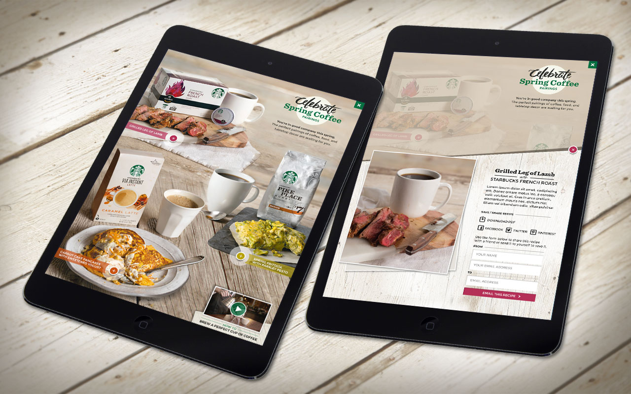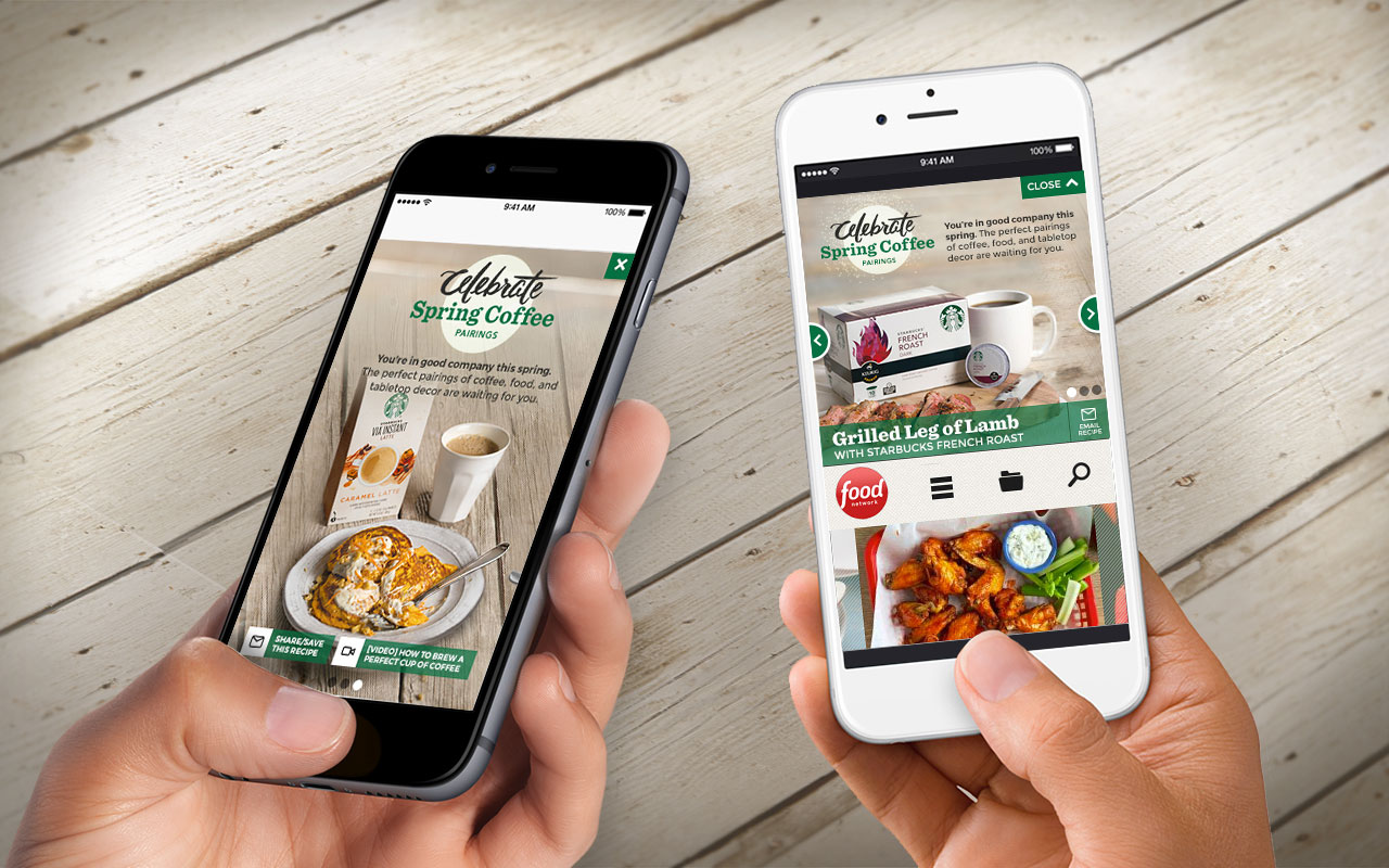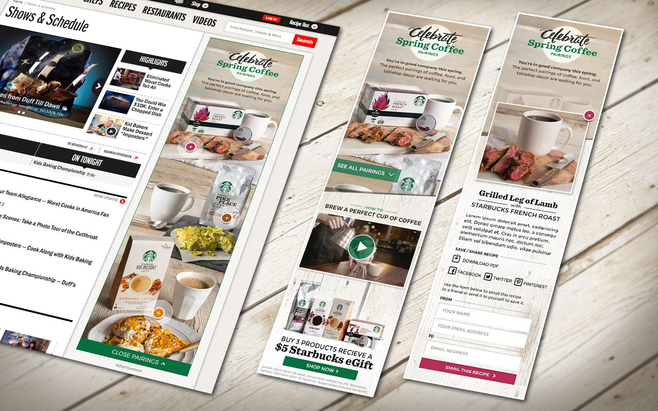 Starbucks partnered with Food Network to execute a series of ad units to live across all device types, reaching out to users however they engage with our content, whether in the Food Network App or on its parent website. The ads feature recipe pairings giving the advertising a contextual advertorial appeal.