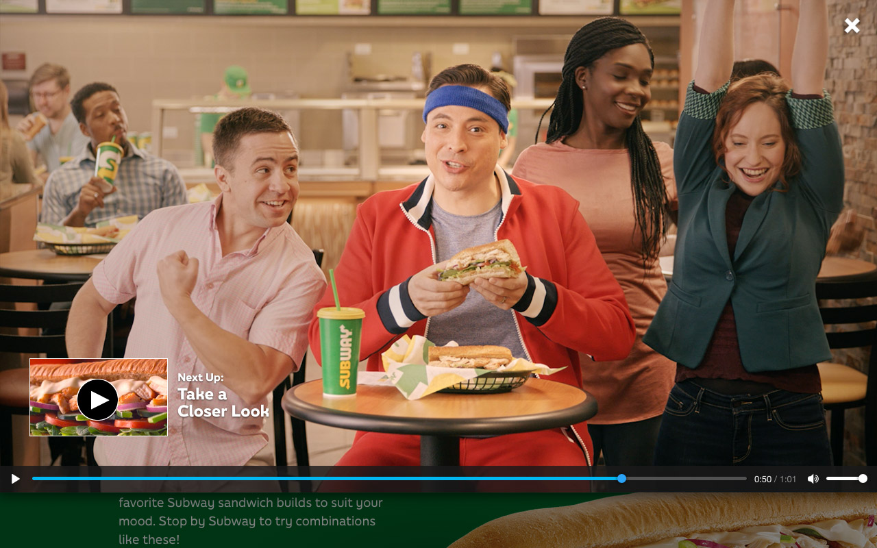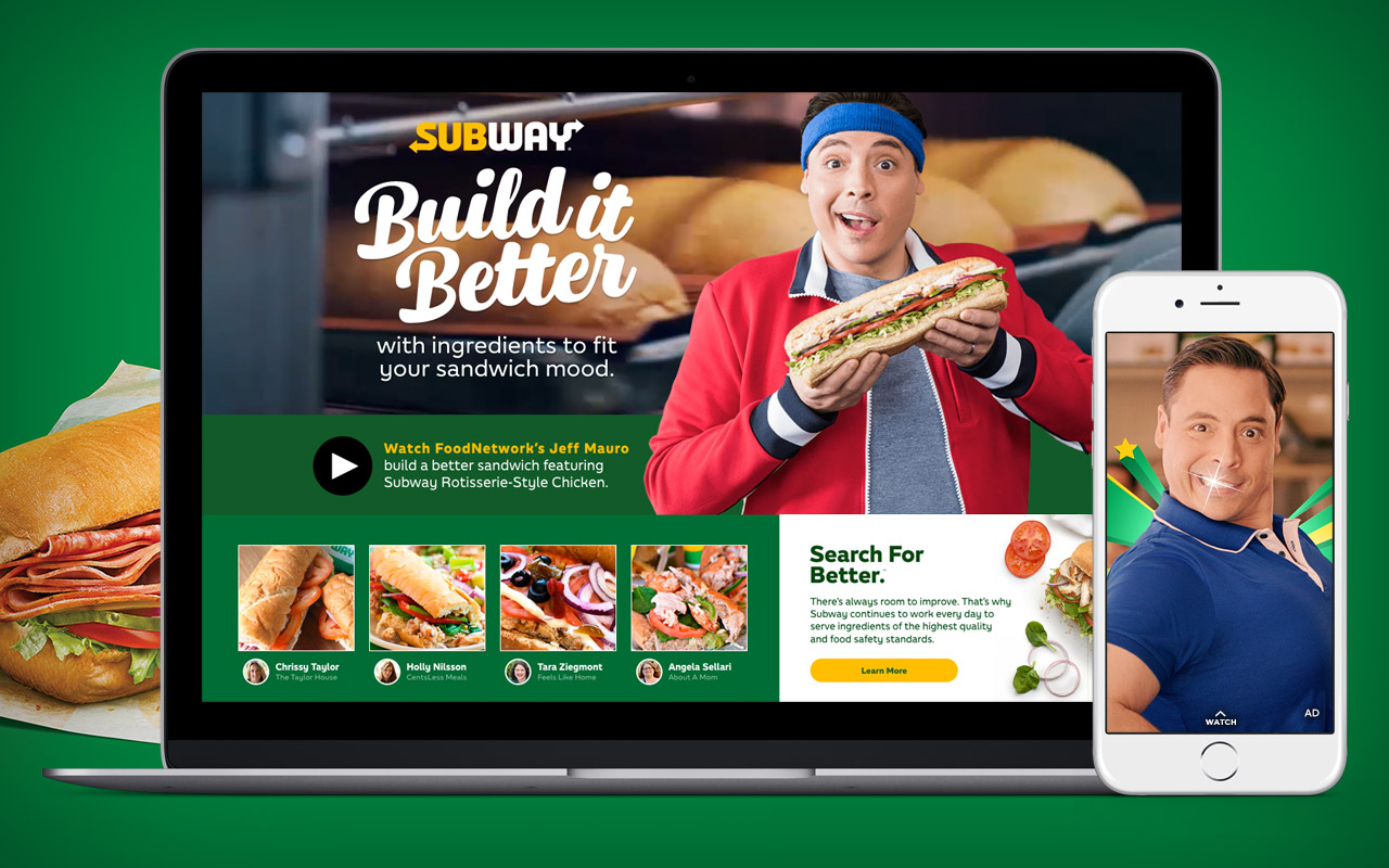 Food Network's Jeff Mauro builds a better sandwich featuring the Subway Italian Hero. Video was promoted on Snapchat within Food Network's Snapchat Discover. It also was featured on a custom microsite for Subway, which refreshed twice detailing the fresh side of these two Subway sandwiches.